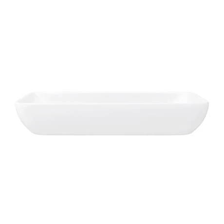 The modern sleek shape of this stylish large rectangular counter top basin will create a contemporary feel in any bathroom. Made from high quality vitreous china with a high gloss white finish, the basin is perfect for counter tops and is best complemented with a high rise basin mixer or wall mounted tap. Some small dimensional variation may occur due to manufacturing tolerances. Waste not included.