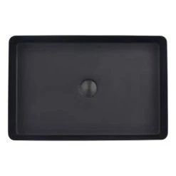 JTP Vos Matt Black Rectangular Stainless Steel Counter Top Basin + Waste