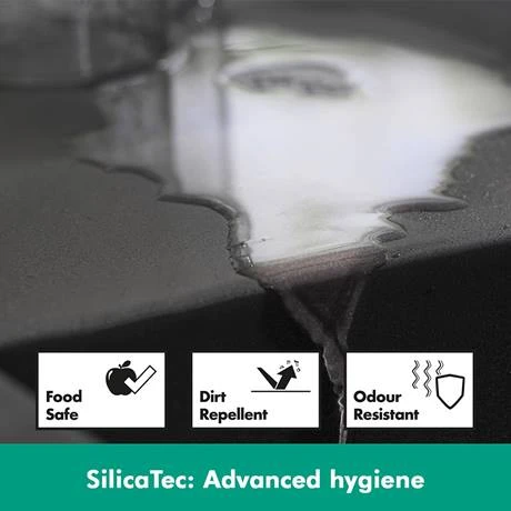 A hard, non-porous composite of quartz and acrylic, SilicaTec Granite is a patented material used to create hansgrohe’s long-lasting kitchen sinks. Smooth to the touch, SilicaTec surfaces are highly resistant to food stains, scratches, knocks, and dents. You’ll also benefit from its ability to deaden the sound of running water; for quieter, atmospheric kitchens.