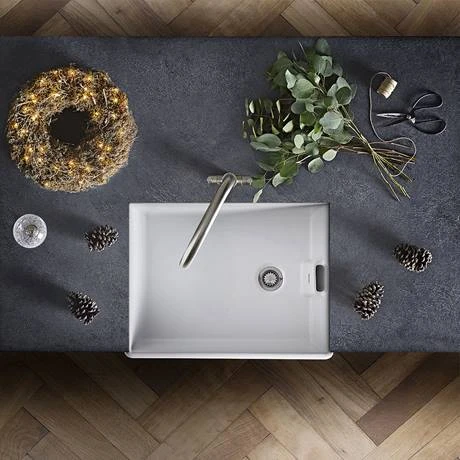 The Grange Belfast features slim profile walls with sharper radius corners – offering a contemporary sit-on Belfast option which benefits from a slightly larger bowl. Comes supplied with basket strainer waste and overflow kit.