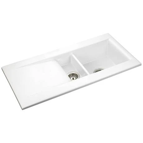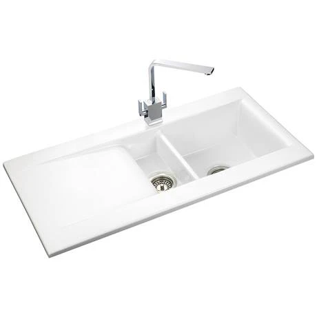 This Nevada 1.5 Bowl Ceramic Sink offers a unique blend of ceramic durability and ultra contemporary styling. With sleek bowls and a deep recessed drainer, this kitchen sink is ideal for the modern kitchen. Made from fire-clay ceramic providing superior strength while it’s smooth high gloss finish looks stunning.