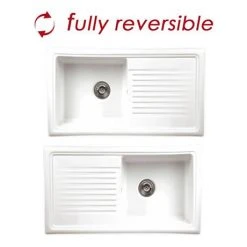 This Reginox Contemporary White Ceramic 1.0 Bowl Kitchen Sink with modern chrome tap is from the Regi-Ceramic range, made from the highest grade fine fireclay it is able to withstand the daily uses of the kitchen. This inset sink requires a minimum cabinet size of 600mm and has a fully reversible drainer. A polished chrome basket strainer waste is also included. Reginox ceramics offer a stylish contemporary or traditional alternative to other materials. With many different styles available to choose from Reginox ceramics offer something to suit all kitchens. Supplied with a stylish Reginox Genesis modern kitchen tap and a polished chrome basket strainer waste. This great looking sink comes with a 10 year manufacturers guarantee.
