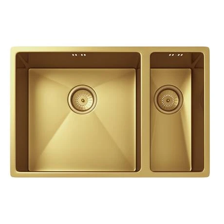 With a stunning gold finish, this Venice 1.5 bowl kitchen sink will add a designer look to the kitchen. Made from premium grade stainless steel, the sink has a unique ‘Nano’ coating that is anti-bacterial and scratch resistant. The channel grooves at the bottom of the bowl ensures optimal drainage achieved. Comes supplied with matching basket strainers and wastes.