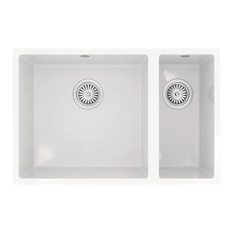 The Venice composite kitchen sink range are constructed from pressed material that is stain, scratch and impact resistant as well as being antibacterial. The sinks can withstand high heat temperatures and are easy to maintain and clean. This 1.5 bowl sink comes in a crisp gloss white finish and is fully reversible. Comes supplied with chrome basket strainer wastes.