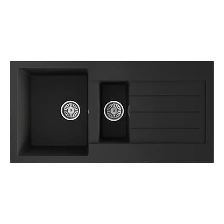 The Venice composite kitchen sink range are constructed from pressed material that is stain, scratch and impact resistant as well as being antibacterial. The sinks can withstand high heat temperatures and are easy to maintain and clean. This 1.5 bowl sink comes in a smooth matt black finish and is fully reversible so the drainer can be on the left or right. Comes supplied with chrome basket strainer wastes.