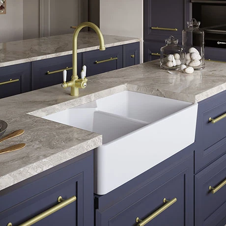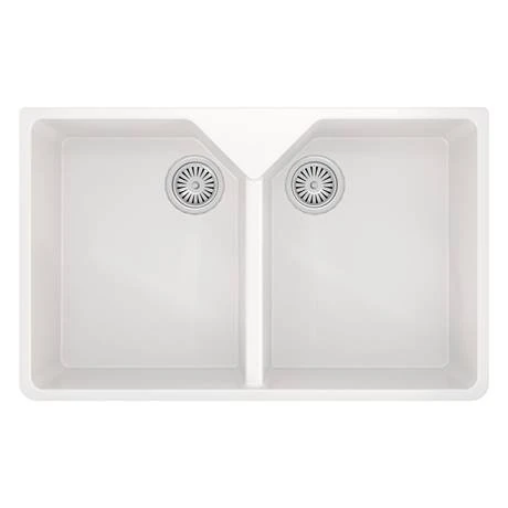 The Venice composite kitchen sink range are constructed from pressed material that is stain, scratch and impact resistant as well as being antibacterial. The sinks can withstand high heat temperatures and are easy to maintain and clean. This 2.0 bowl sink comes in a smooth gloss white finish and comes supplied with chrome basket strainer wastes.
