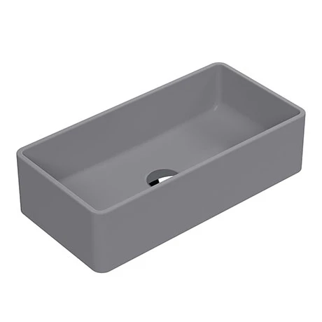 The Venice rectangular counter top basin features soft square lines and a modern minimalist design. Designed to be mounted to a worktop console or vanity unit, the basin is the perfect complement for a high rise tap or wall mounted mixer. Manufactured from vitreous china with a quality matt grey finish.